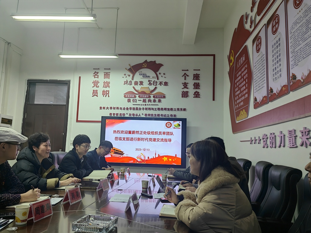 12月13日,貴州大學(xué)黨委正處級(jí)組織員董蔚然攜我支部支委成員與材料與冶金學(xué)院高分子材料與工程教研室教工黨支部開展黨建交流。材料與冶金學(xué)院黨委書記劉劍、正處級(jí)組織員熊玉竹以及高分子材料與工程教研室教工黨支部全體黨員參加活動(dòng)?;顒?dòng)由全國(guó)高校“雙帶頭人”教師黨支部書記工作室負(fù)責(zé)人、高分子材料與工程教研室教工黨支部書記謝海波主持。