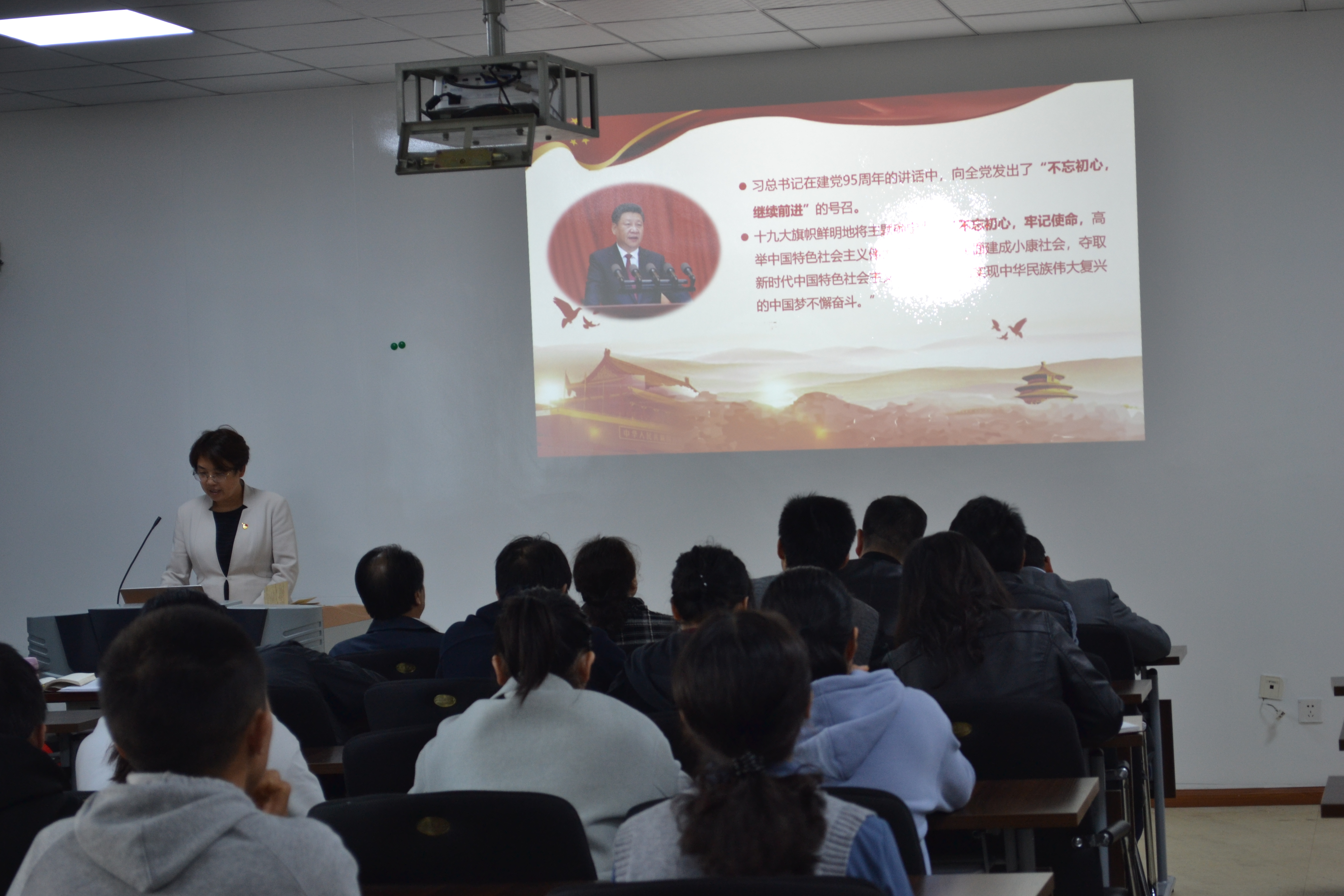 機(jī)械工程網(wǎng)訊(報道 胡佳 |攝影 劉艷)11月4日上午十點(diǎn),貴州大學(xué)副校長張覃教授在機(jī)械樓416教室為分管部門和聯(lián)系學(xué)院師生黨員代表講授題為《不忘初心、牢記使命,增強(qiáng)黨性修養(yǎng),提高國際化辦學(xué)水平》專題黨課。機(jī)械工程學(xué)院、電氣工程學(xué)院、資源與環(huán)境工程學(xué)院、生命科學(xué)學(xué)院、工程訓(xùn)練中心、國際交流與合作處、東盟研究院等張覃副校長聯(lián)系學(xué)院和分管部門的黨員領(lǐng)導(dǎo)干部和師生黨員代表參加學(xué)習(xí)。