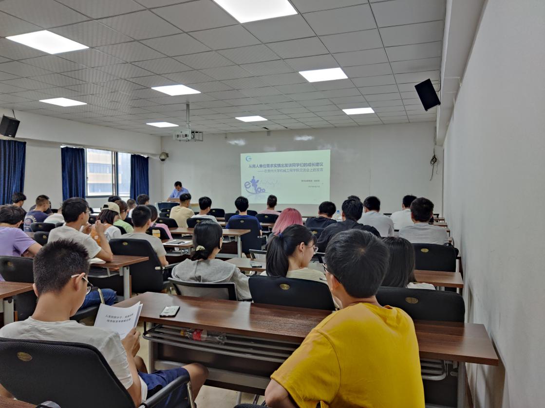 機(jī)械工程網(wǎng)站訊(記者 袁 銀|攝影 陳世婕)2021年6月21日,機(jī)械工程學(xué)院邀請(qǐng)了貴州出版集團(tuán)版云大數(shù)據(jù)公司董事長(zhǎng)、數(shù)字公司副總經(jīng)理、北京印刷學(xué)院新聞出版專業(yè)研究生導(dǎo)師、貴州大學(xué)公共管理學(xué)院MPA研究生導(dǎo)師張忠凱在機(jī)械樓416教室為學(xué)院全體研究生開展了以“從用人單位需求實(shí)情談同學(xué)們的成長(zhǎng)建議”的就業(yè)講座。