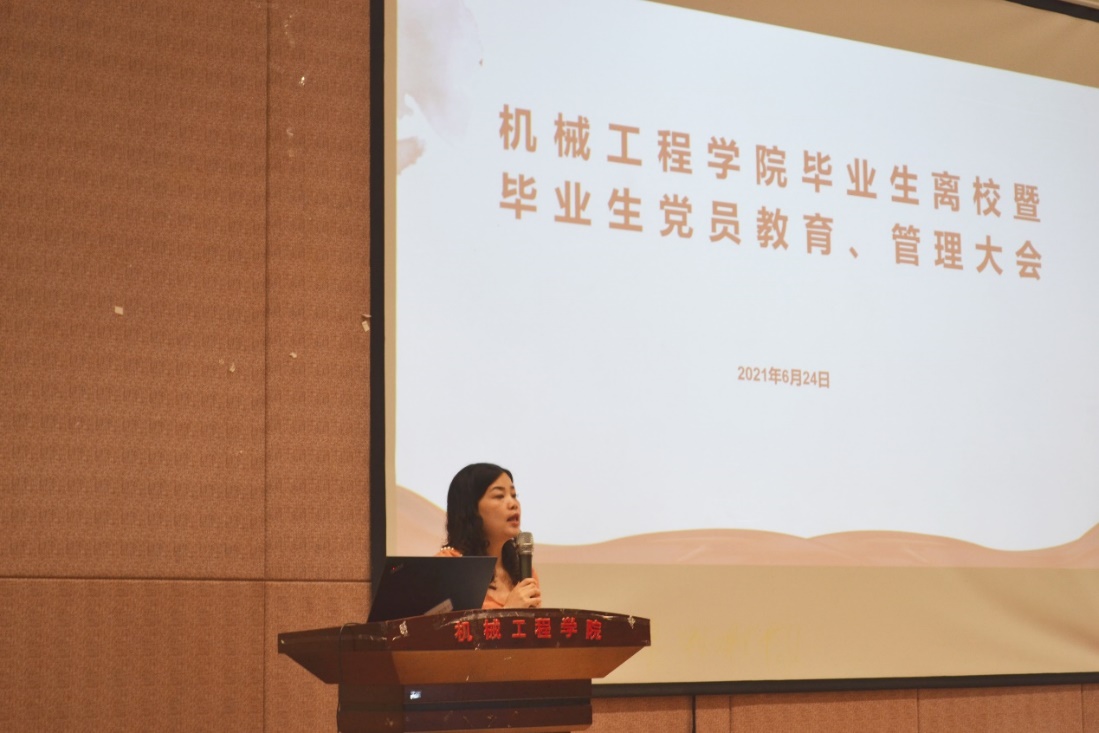 岑曉潔宣讀了《機(jī)械工程學(xué)院關(guān)于做好近期安全穩(wěn)定工作的通知》和《安全離校承諾書(shū)》,隨后詳細(xì)講解了畢業(yè)生黨員在黨組織關(guān)系轉(zhuǎn)接中的相關(guān)事項(xiàng)。