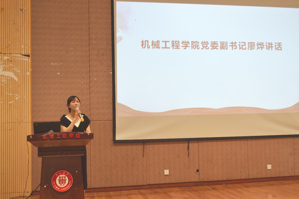 機(jī)械工程網(wǎng)站訊(記者 張江平|攝影 王若男)為扎實(shí)做好機(jī)械工程學(xué)院2021屆畢業(yè)生離校有關(guān)工作,加強(qiáng)對(duì)畢業(yè)生黨員的教育管理,機(jī)械工程學(xué)院于6月24日在機(jī)械樓圓形報(bào)告廳召開(kāi)畢業(yè)生離校暨畢業(yè)生黨員教育管理大會(huì)。學(xué)院黨委副書(shū)記廖燁出席會(huì)議,學(xué)生科岑曉潔、何琳煜、王嘉斌老師及研究生科趙麗芳老師和全體畢業(yè)生參加會(huì)議。會(huì)議由趙麗芳主持。