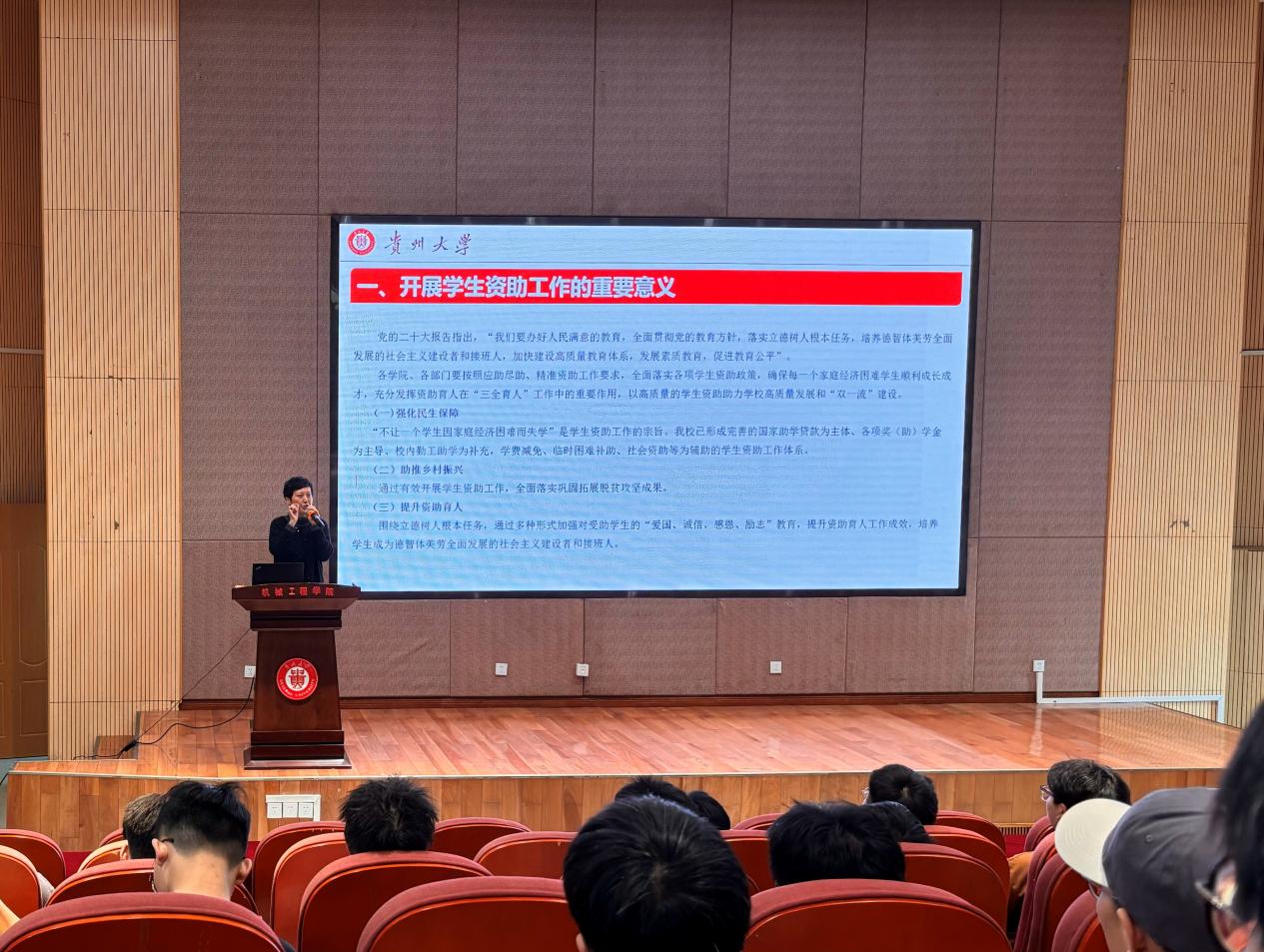 活動(dòng)伊始,董蔚然同志發(fā)表了熱情洋溢的致辭,從開展學(xué)生資助工作的重要意義、目前高校學(xué)生資助政策、貴州大學(xué)學(xué)生資助體系及學(xué)生受助情況、開展學(xué)生資助工作、如何凸顯資助育人成效5個(gè)方面向同學(xué)們進(jìn)行宣講。她強(qiáng)調(diào)了資助政策對于促進(jìn)教育公平、助力學(xué)生成長的重要意義,并鼓勵(lì)學(xué)生們積極了解政策、申請資助,為自己的未來發(fā)展打下堅(jiān)實(shí)的基礎(chǔ)。