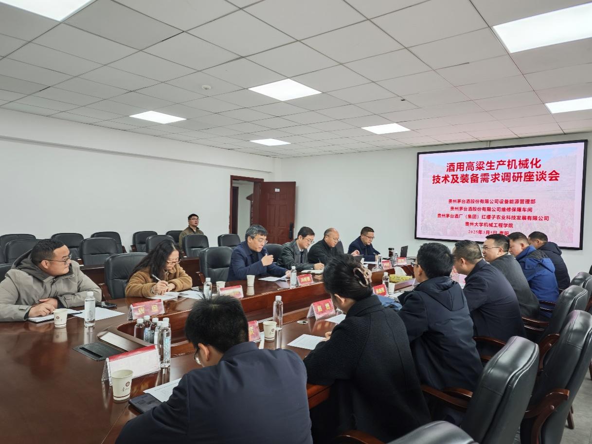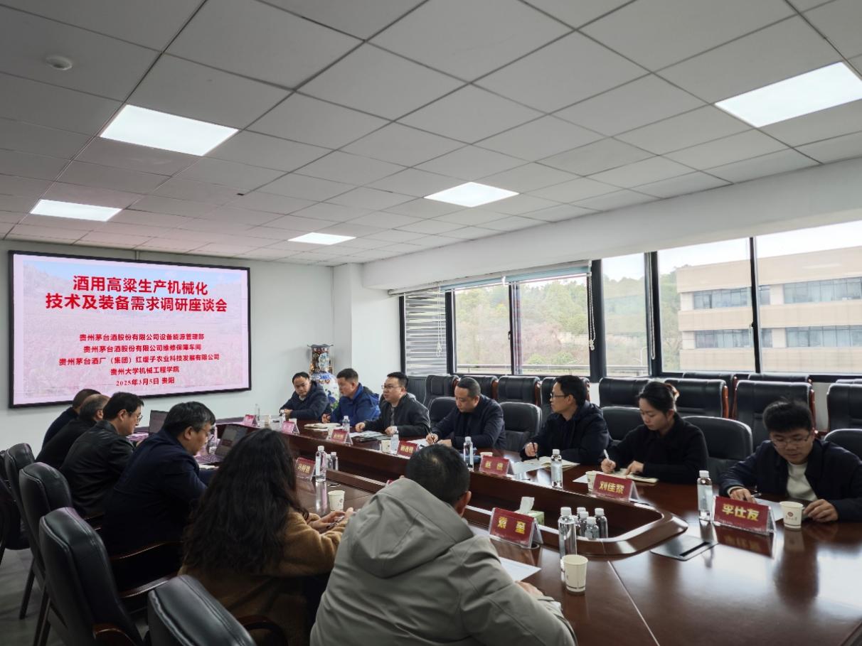 2025年3月5日下午,貴州大學(xué)機械工程學(xué)院與貴州茅臺酒股份有限公司調(diào)研座談會在貴州大學(xué)機械工程學(xué)院舉行,會議主題聚焦于酒用高粱生產(chǎn)機械化技術(shù)及裝備需求。貴州茅臺酒股份有限公司設(shè)備能源管理部、維修保障車間、貴州茅臺酒廠(集團)紅纓子農(nóng)業(yè)科技發(fā)展有限公司相關(guān)負責(zé)同志和技術(shù)人員,機械工程學(xué)院院長趙津教授、副院長唐正強教授、馮毅雄教授、張富貴教授、吳雪梅副教授、盧劍鋒副教授、袁奎高級實驗師等參加座談會。