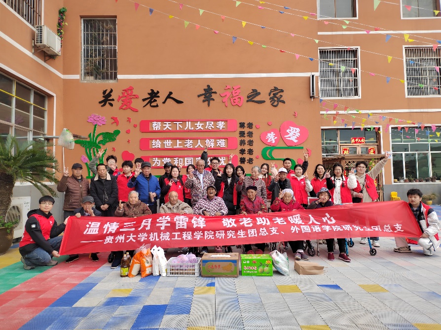 2025 年 3 月 30 日下午,貴州大學(xué)機(jī)械工程學(xué)院研究生團(tuán)總支、外國語學(xué)院研究生團(tuán)總支與花溪區(qū)幸福頤養(yǎng)中心攜手,共同開展了一場以弘揚(yáng)新時(shí)代雷鋒精神為主題的志愿服務(wù)活動。此次活動旨在引導(dǎo)廣大青年學(xué)生積極踐行雷鋒精神,以及 “奉獻(xiàn)、友愛、互助、進(jìn)步” 的志愿精神,通過實(shí)際行動紀(jì)念雷鋒,深入弘揚(yáng)雷鋒精神,大力宣傳其在新時(shí)代的重要意義,并樹立學(xué)雷鋒先進(jìn)典型,讓雷鋒精神在新時(shí)代持續(xù)傳承、璀璨奪目。