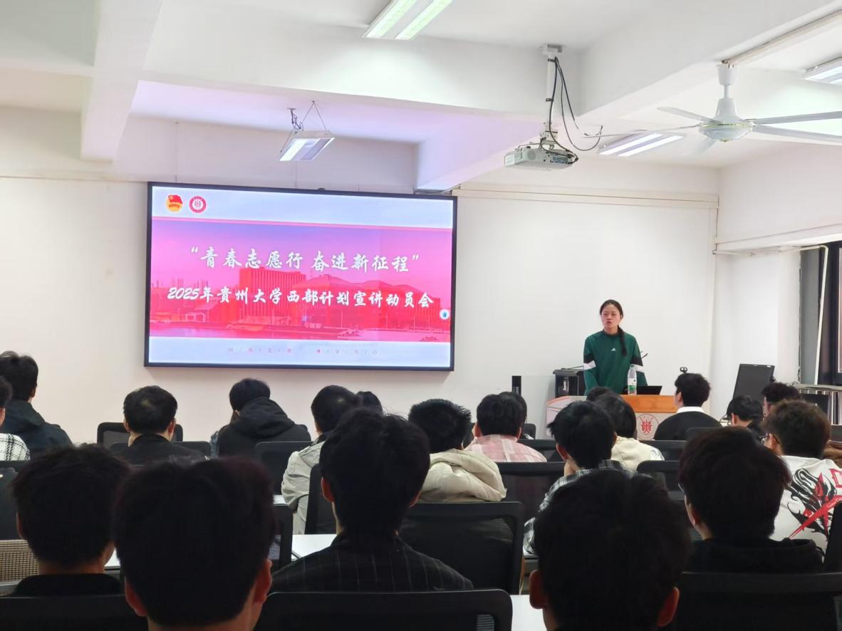 為深入貫徹國家“大學(xué)生志愿服務(wù)西部計劃”政策號召,引導(dǎo)青年學(xué)子投身西部基層建設(shè),學(xué)院團(tuán)委于4月29日在327室舉辦了2025年大學(xué)生志愿服務(wù)西部計劃專題宣講會。通過政策解讀、經(jīng)驗分享與互動答疑相結(jié)合的形式,為學(xué)生深度解讀西部計劃志愿服務(wù)政策。