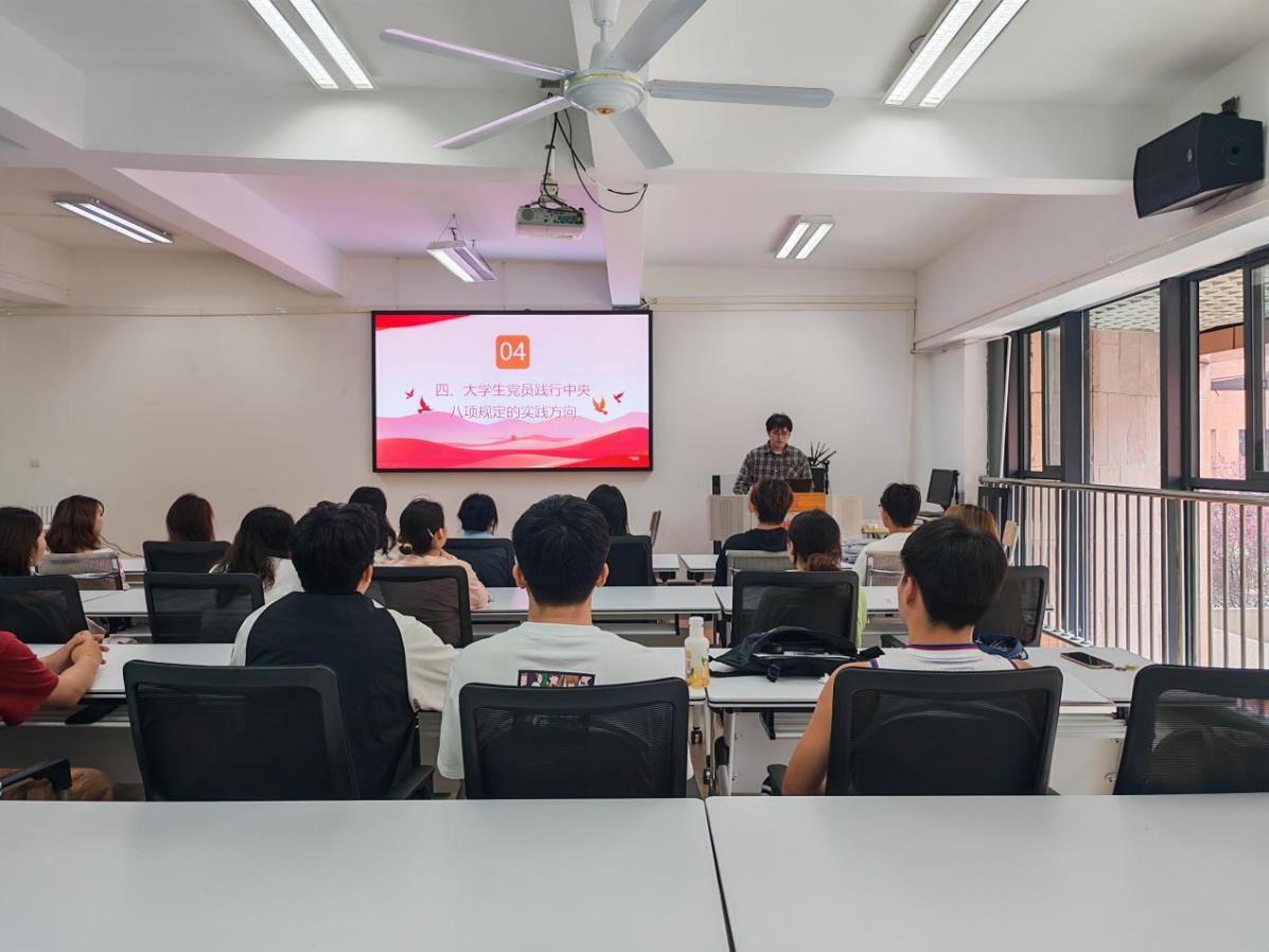 學(xué)生科趙麗芳老師帶領(lǐng)同學(xué)們深入學(xué)習(xí)中央八項(xiàng)規(guī)定出臺(tái)的相關(guān)背景、主要內(nèi)容和重要意義,引導(dǎo)同學(xué)們思考如何將中央八項(xiàng)規(guī)定融入到學(xué)習(xí)和生活中。學(xué)生黨員雷繽演結(jié)合自己的學(xué)習(xí)、生活和做學(xué)生干部工作的體會(huì)和感受,號(hào)召同學(xué)們要積極踐行中央八項(xiàng)規(guī)定。在學(xué)習(xí)上杜絕抄襲拼湊,認(rèn)真開展實(shí)驗(yàn),用真實(shí)的數(shù)據(jù)進(jìn)行論證,在學(xué)科競(jìng)賽上要勇攀高峰,提高創(chuàng)新能力和動(dòng)手能力;在生活上,要踐行勤儉節(jié)約,堅(jiān)持“光盤行動(dòng)”、樹立理性消費(fèi)意識(shí),不鋪張浪費(fèi);在學(xué)生工作上,開展活動(dòng)提前做好詳細(xì)的規(guī)劃和預(yù)算,避免超支浪費(fèi),合理利用學(xué)校現(xiàn)有的場(chǎng)地和設(shè)備,減少不必要的開支,在與同學(xué)溝通交流時(shí),摒棄官僚作風(fēng),真心實(shí)意為同學(xué)服務(wù),提高工作效率,切實(shí)解決同學(xué)們?cè)趯W(xué)習(xí)和生活中遇到的實(shí)際問(wèn)題。