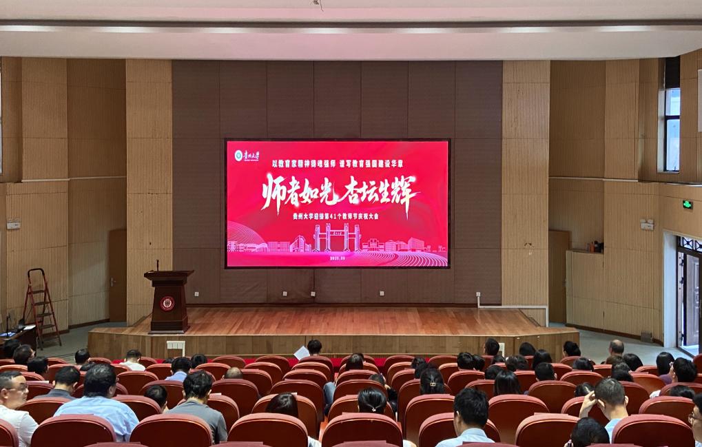 慶祝大會上,一批在教育教學(xué)、科研創(chuàng)新、管理服務(wù)等方面表現(xiàn)突出的優(yōu)秀教師和先進(jìn)集體受到表彰,貴州大學(xué)黨委書記楊未為我院馮毅雄教授領(lǐng)銜申報(bào)獲得的第四批全國高校黃大年式教師團(tuán)隊(duì)頒獎。