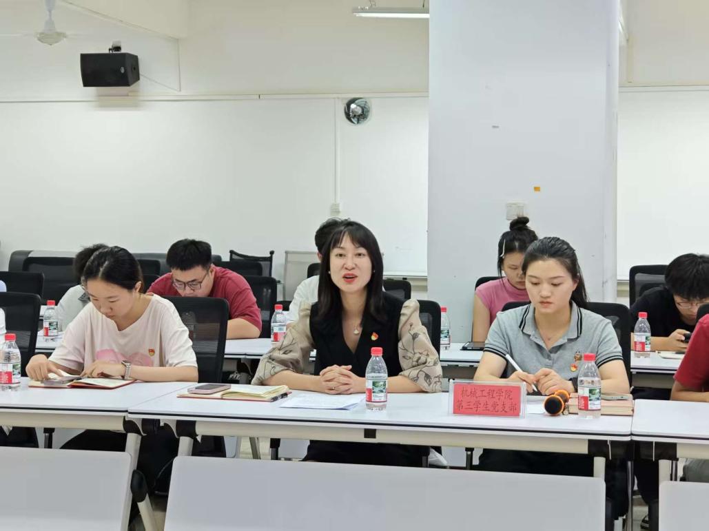 科技產(chǎn)業(yè)黨委副書記、資產(chǎn)經(jīng)營(yíng)管理辦公室副主任張?jiān)シ?/span>和機(jī)械工程學(xué)院黨委副書記廖燁在總結(jié)講話中,對(duì)此次活動(dòng)的成效給予了充分肯定,認(rèn)為活動(dòng)是強(qiáng)化基層黨組織組織功能、踐行“以師生為中心”理念、構(gòu)建“三全育人”格局的有效舉措,并寄語同學(xué)們不負(fù)韶華、不負(fù)時(shí)代饋贈(zèng),要志存高遠(yuǎn)做好人生規(guī)劃,牢記黨員身份,用行動(dòng)擦亮黨員名片,展現(xiàn)新時(shí)代黨員的良好風(fēng)貌。