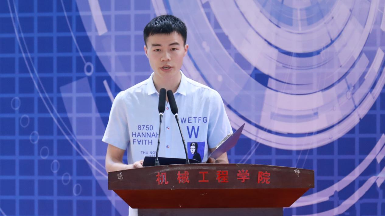 貴州大學機械工程學院機械設計制造及其自動化專業(yè)羅一波同學代表參賽隊伍發(fā)言。